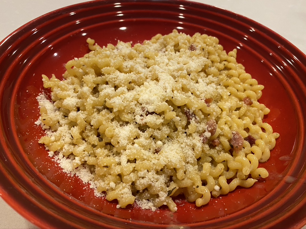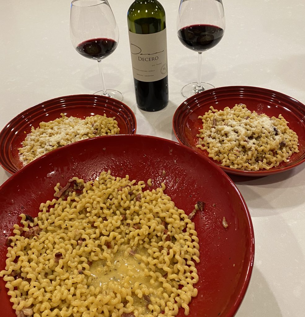 If you think carbonara is a heavy, cream-laden pasta dish think again! Real carbonara is a simple dish of pasta, egg, parsley, pancetta, and pepper that originated in Rome in the mid 1800s. It is extremely simple and quick to prepare, however, it does require exact timing to get just right. With a little planning and advanced staging of ingredients in the final prep space, anyone can master this delicious Italian staple.