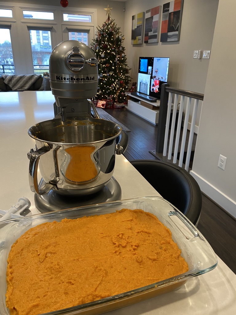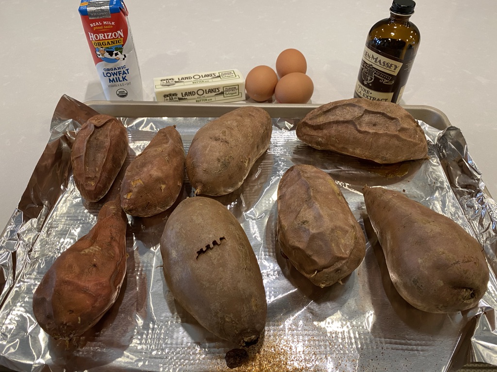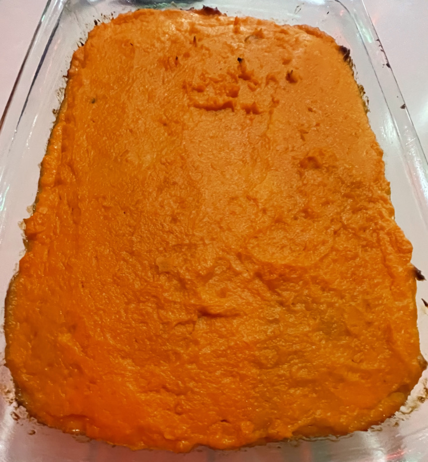 Bake sweet potato casserole for 45 to 50 minutes, until the tips and edges begin to brown.
