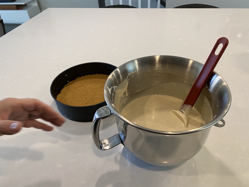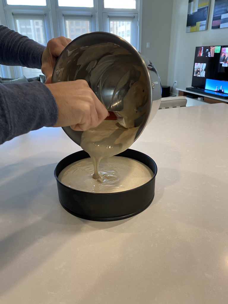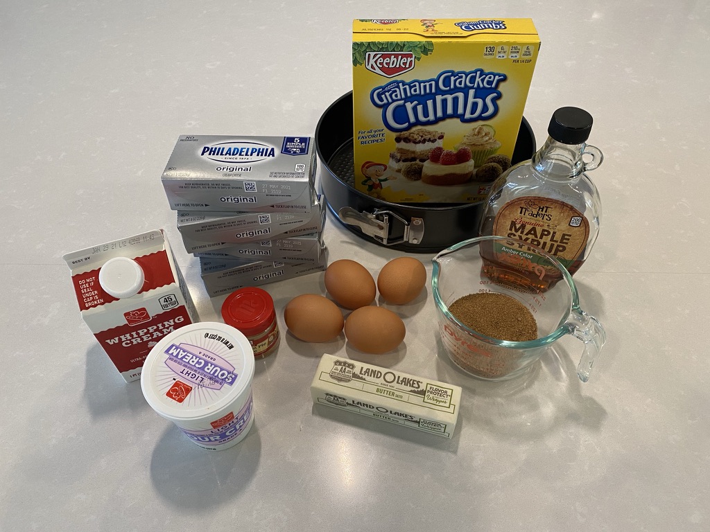 Allow cream cheese, sour cream, eggs, and all cold ingredients to come to room temperature before starting, at least 2 hours outside the refrigerator.