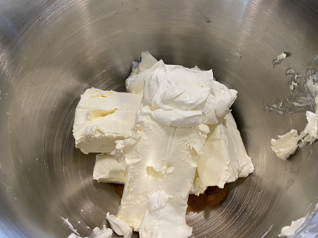 In a Kitchen Aid, combine the brown sugar, pumpkin pie spice, and sour cream on medium speed until nicely blended.