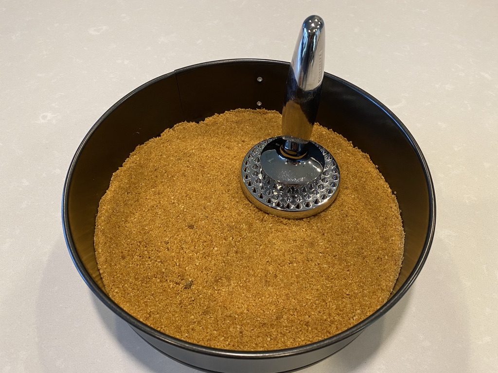 Works best with a cheesecake pan that has spring form sides and a removable bottom. Buy one that includes non-stick baking paper liners.