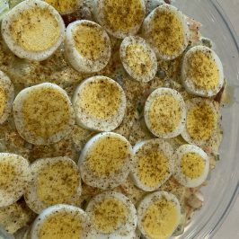 For the top layer, cover the poultry legs completely with the remaining beans.