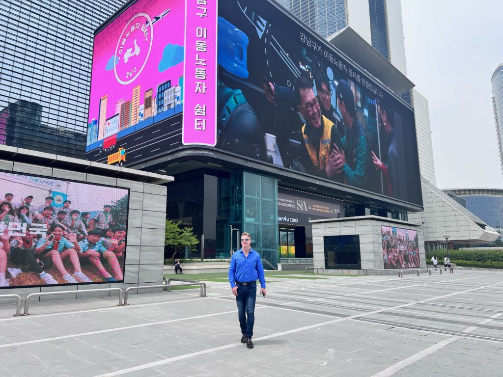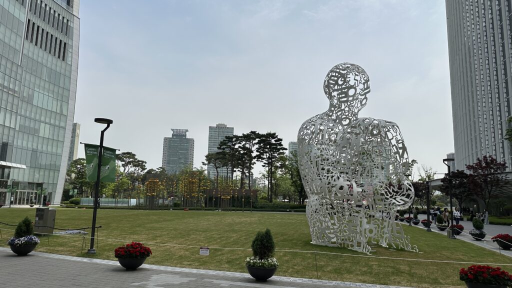 Our third day in Seoul was all about exploring its vibrant modern attractions. We began at Olympic Park, a sprawling multi-use complex that preserves the spirit of the 1988 Seoul Olympics. The park is home to the iconic World Peace Gate, a structure that harmonizes traditional Korean curves with modern design elements. Adorned with murals of the four guardian deities—Blue Dragon, Red Bird, White Tiger, and Turtle Snake—the gate symbolizes unity and peace. Surrounding the gate, the expansive Peace Square provides space for cultural events, leisure activities, and reflection on the park’s legacy as a symbol of global harmony.