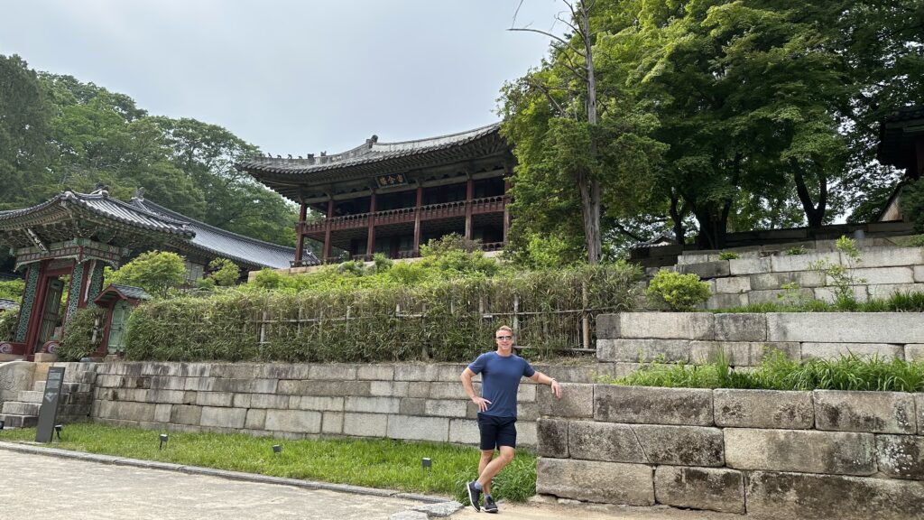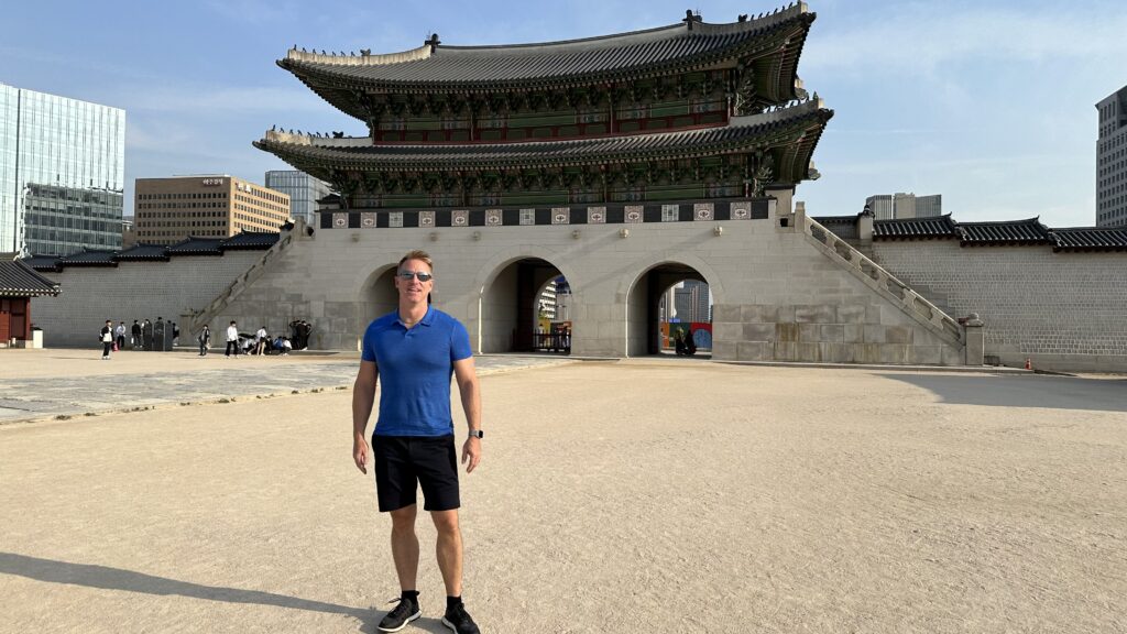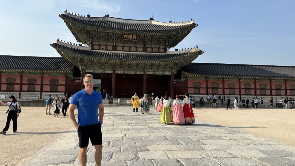 The end of the ride wasn’t the end of the day. After ditching the bikes and taking a quick shower, we continued with a mini walking tour of Seoul, starting at Gyeongbokgung Palace, the largest of Seoul’s five grand palaces. Built in 1395, this palace was a cornerstone of the Joseon dynasty and remains one of the most iconic landmarks in Korea. Though we didn’t enter the palace that day, we admired its grandeur from the outside and made a mental note to return in traditional costumes.