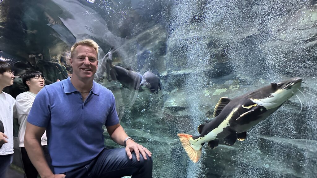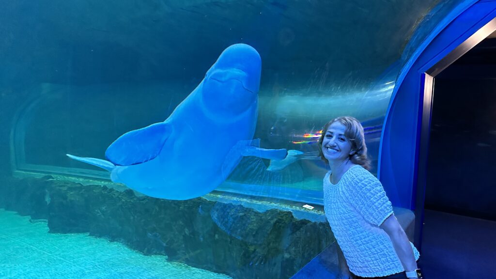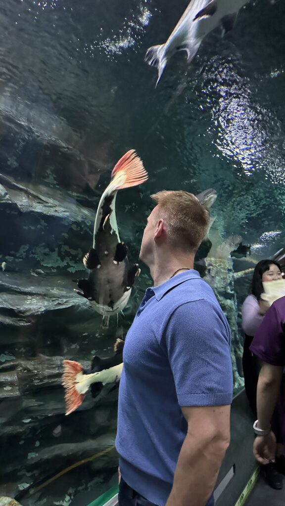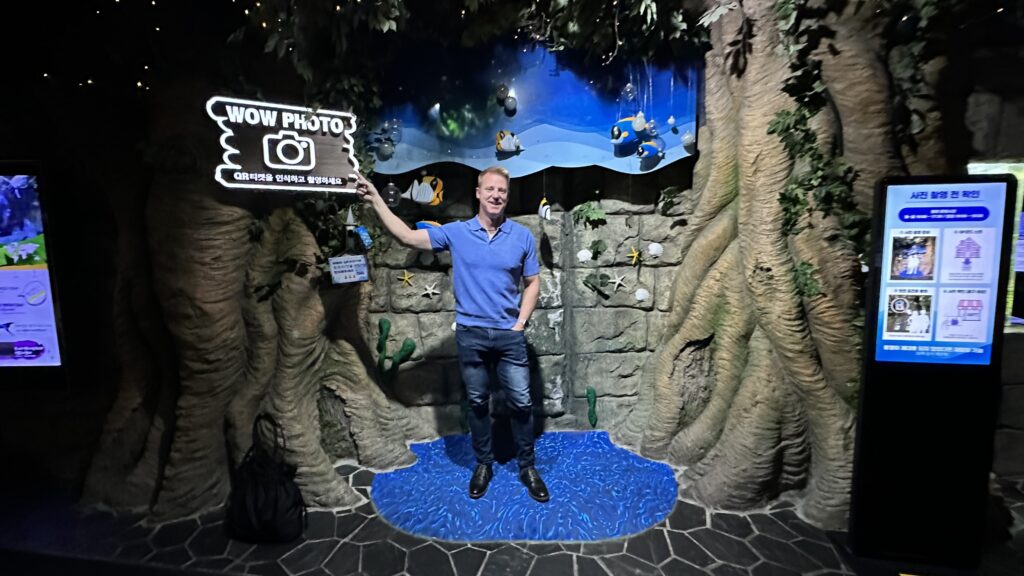 Next, we ventured to COEX Mall, a massive underground shopping and entertainment complex located in Gangnam. One of its standout attractions is the Starfield Library, a book lovers dream with 50-foot-high bookshelves lined with tens of thousands of books. The library’s modern design is as awe-inspiring as its collection, making it a must-visit and popular Instagramable site. After marveling at the library, we explored the COEX Aquarium, home to an impressive array of marine life, from tropical fish to sea otters. The aquarium’s most famous resident is a stunning blue whale model named “Ari”, a beloved centerpiece that captivates visitors of all ages. With over 180 exhibit tanks housing more than 40,000 sea creatures, the aquarium features themed zones like the Amazonian World and Marine Touch Lab, where guests can interact with sea life. The exhibits are both engaging and educational, making the aquarium a perfect stop for families, marine enthusiasts, or anyone looking to immerse themselves in the wonders of the underwater world.