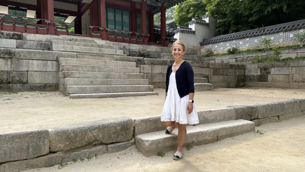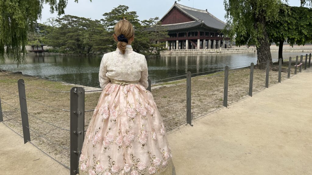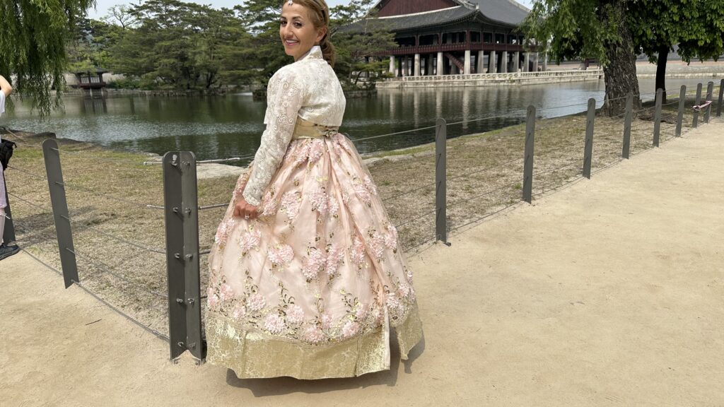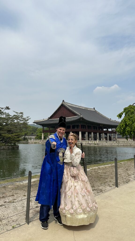 Dressing up in hanbok adds an extra layer of charm to exploring these historic sites, and many visitors seize the opportunity to capture memorable photos in such picturesque surroundings. Bernadette and I had a blast dressing up in the vibrant garments and posing for pictures around the palace’s manicured grounds. It felt like stepping back in time and was a unique way to connect with Korean culture on a deeper level. I highly recommend the experience—any chance to dress up and step into a different era is just fun!