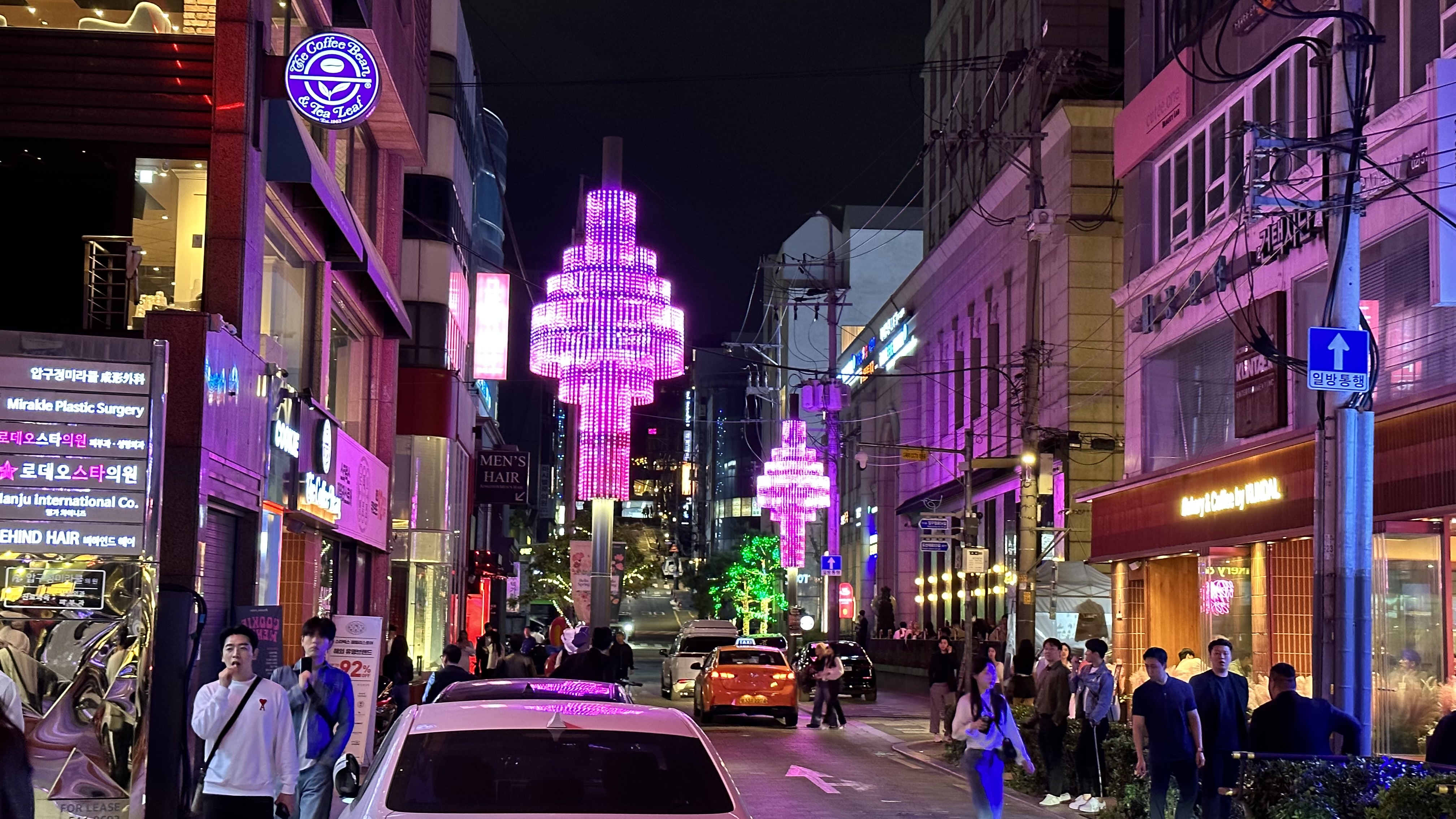 After an early morning flight, Bernadette eased me into the visit by exploring her neighborhood, Itaewon. Known as one of Seoul’s most vibrant and diverse areas, Itaewon is celebrated for its open-minded and accepting atmosphere, making it a hub for Korea’s LGBTQ+ community. Historically, its proximity to the U.S. military base fostered a mix of cultures, creating a neighborhood renowned for its eclectic nightlife, international cuisine, and welcoming vibe. Seoul’s café culture is legendary, and it’s easy to see why. We fueled up at one of the district’s charming cafés, where the coffee—as bold and strong as it was—takes a back seat to stunning pastries that are works of art.