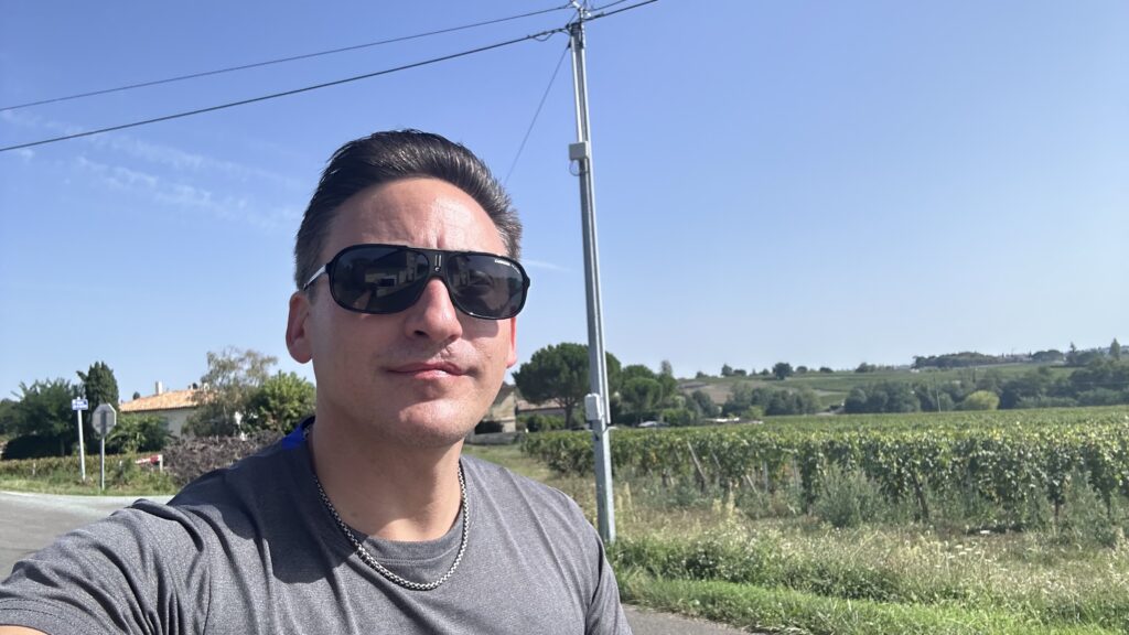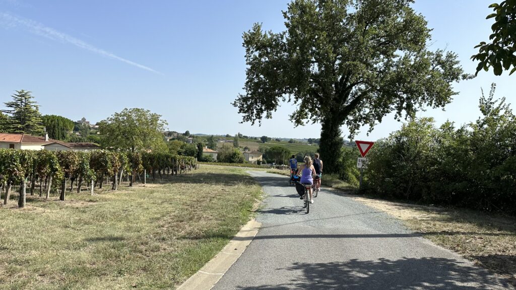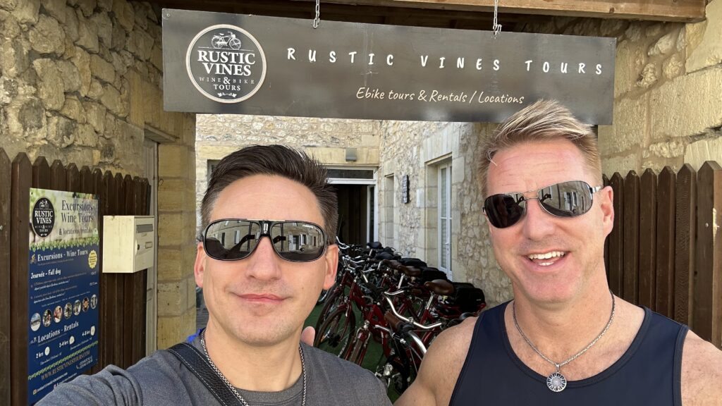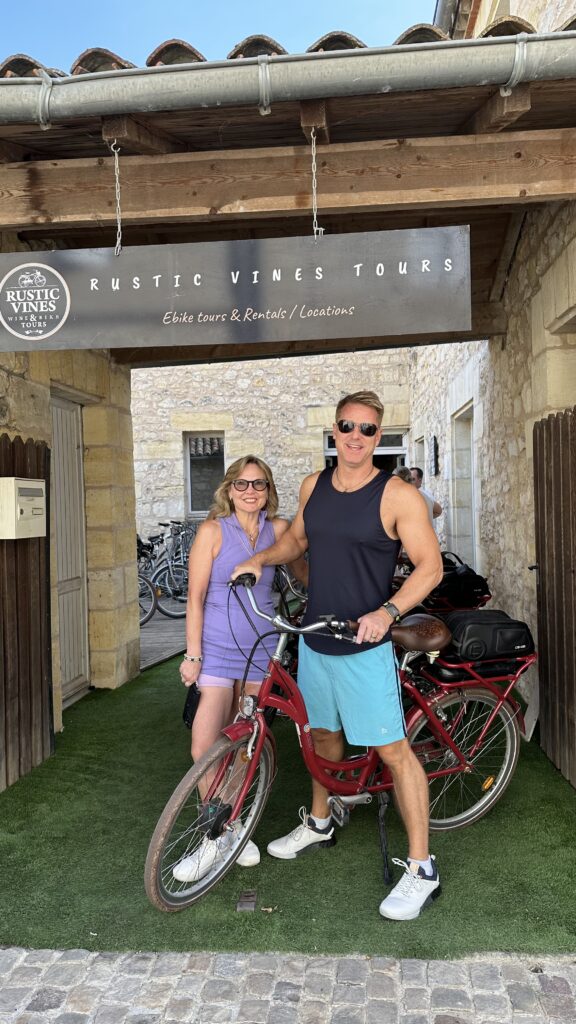 To experience the landscape more intimately, we joined Rustic Vines for an electric bike tour through Saint-Émilion’s rolling vineyards. The adventure, organized by Ramiro, was ultimately my favorite day in Saint-Émilion. The ride was both scenic and exhilarating—except for Michelle’s minor tumble at the start, which provided a few laughs and fortunately left her unharmed. The electric bikes proved essential for tackling the sometimes steep hills that define the countryside, especially under the hot Bordeaux sun.