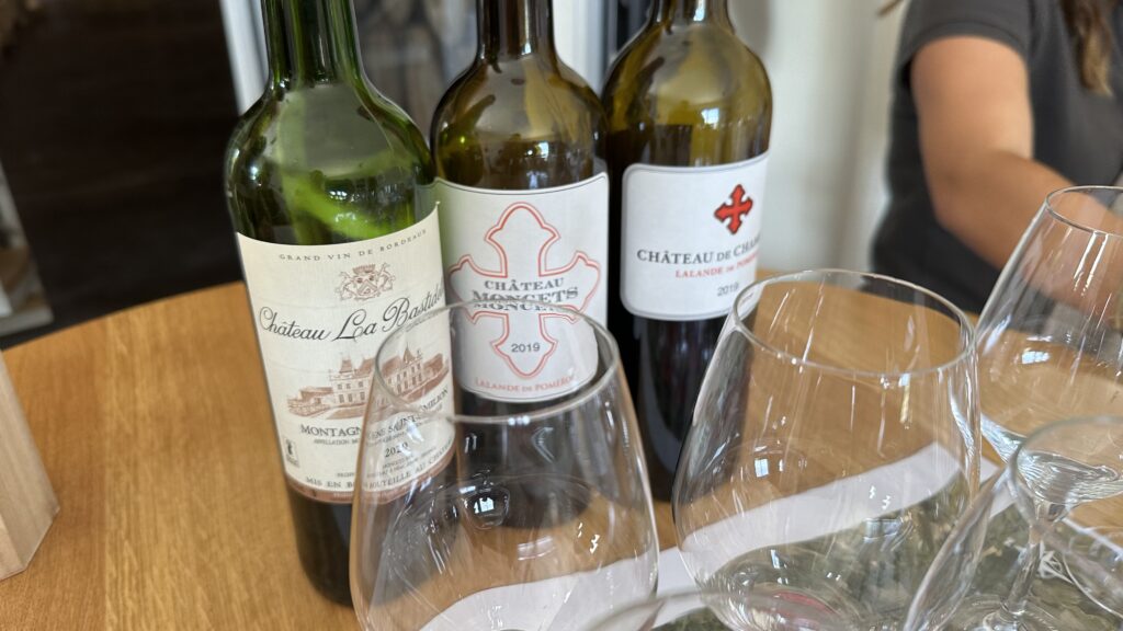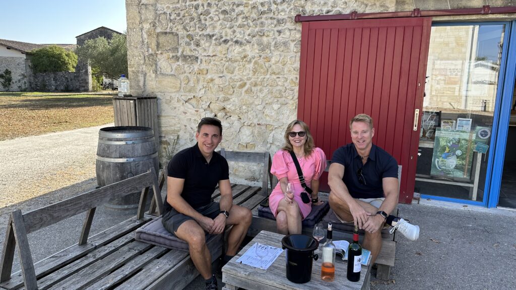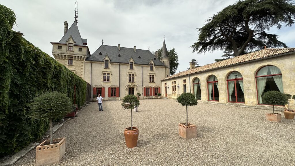 Stops along the way included Château Bernateau and Château Martet, both of which offered unique insights into the region’s winemaking traditions. Château Bernateau, a family-run estate that dates back to the 17th century, is known for its commitment to organic viticulture, enhancing the structure and character of its Merlot-based wines, which we had the pleasure of sampling while taking in breathtaking views of the surrounding countryside.