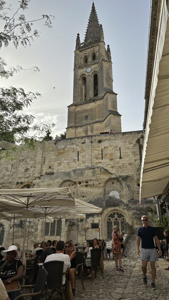 Wine tasting was naturally on the agenda, and in Saint-Émilion, it’s an experience unlike any other. While many of the region’s prestigious vineyards are located outside the village walls, numerous wineries operate tasting rooms only within the town itself, making it easy to sample the region’s finest without leaving the walkable historic core. Among the highlights of the day were visits to the Église Monolithe, a remarkable underground church carved from limestone built on the site it was believed Émilion sought refuge, and the Tertre de la Tente, a steep and winding street that tested our leg strength but rewarded us with incredible views.