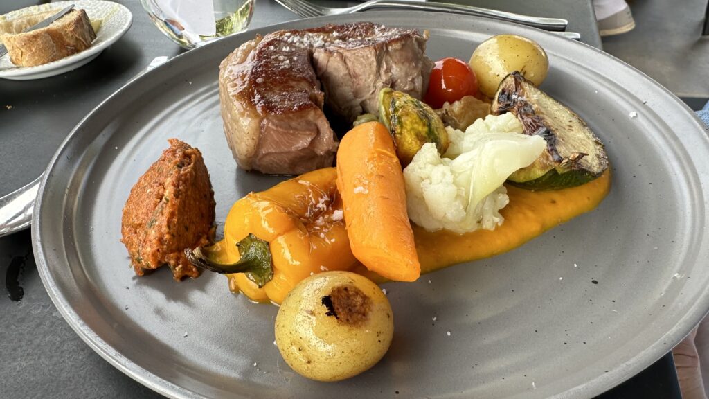 Château Martet, on the other hand, is a beautifully restored estate with a history that spans centuries. The vineyard is renowned for producing powerful and complex wines, with Cabernet Franc playing a prominent role in its blends. Here, we enjoyed a communal lunch featuring a traditional charcuterie spread. I was paired with a young Irishman who, much to my disappointment, wasn’t a vegan—so I was forced to actually share the delicious meats and cheeses with him.
