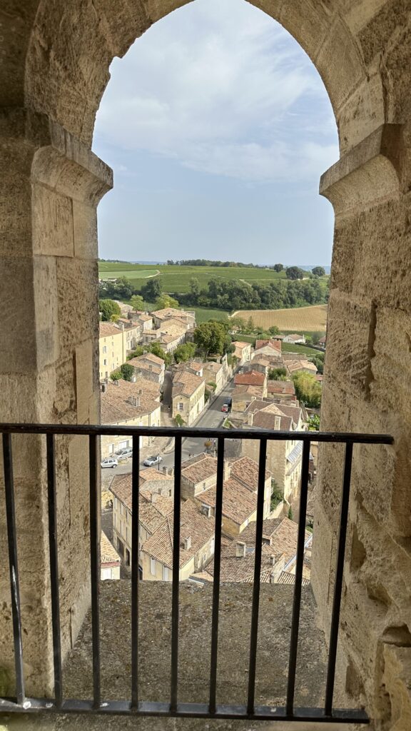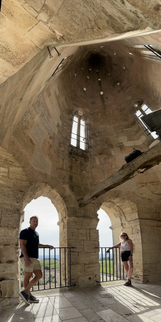 Later, back in the village, we ascended the 196 steps of the Clocher de l’Église Monolithe, the bell tower of Saint-Émilion’s famous underground church. From the top, visitors enjoy breathtaking 360-degree view of Saint-Émilion’s medieval village and rolling vineyards. Travel tip: only a handful of visitors are allowed up at a time. Small groups must borrow a giant iron key, which adds a sense of adventure to the climb, making it feel like a hidden treasure for those in the know.