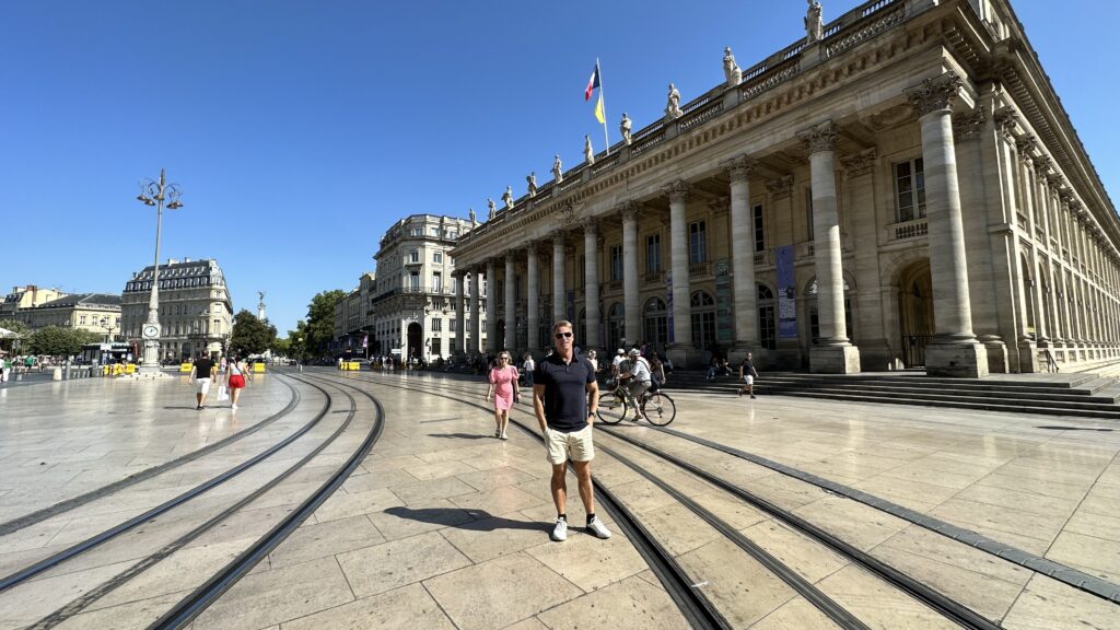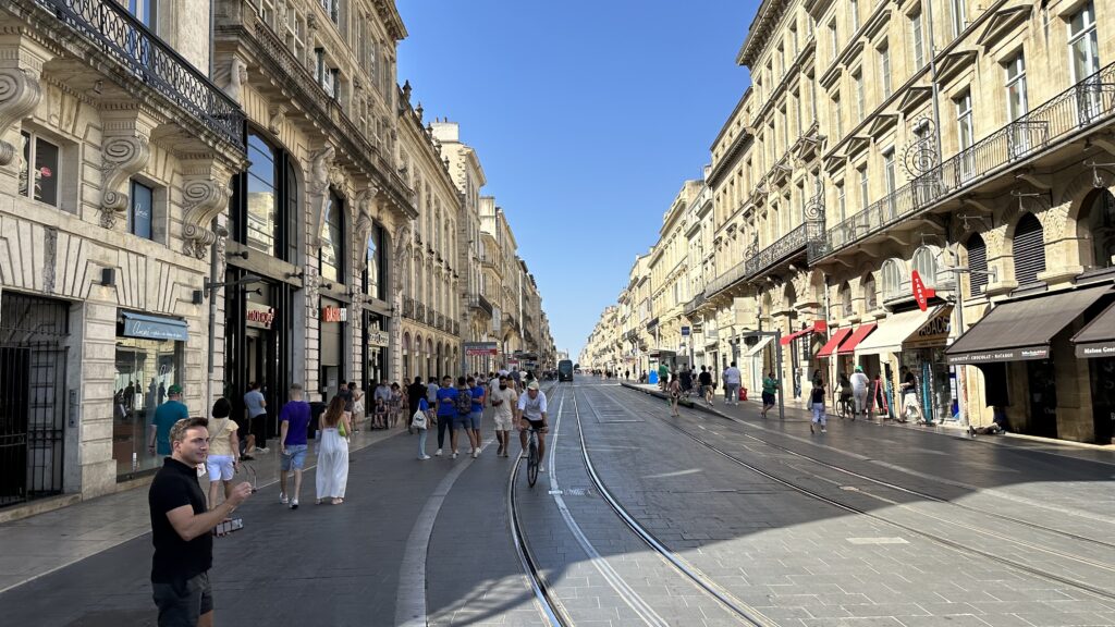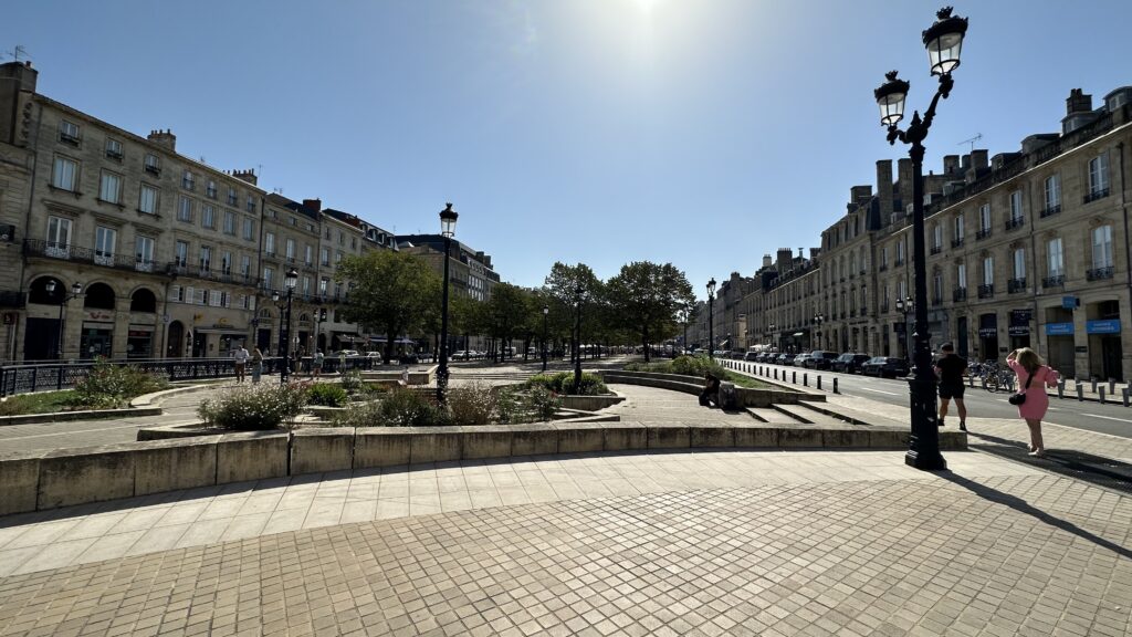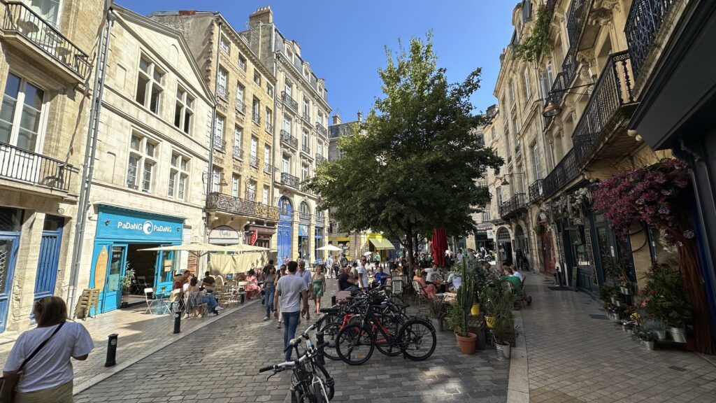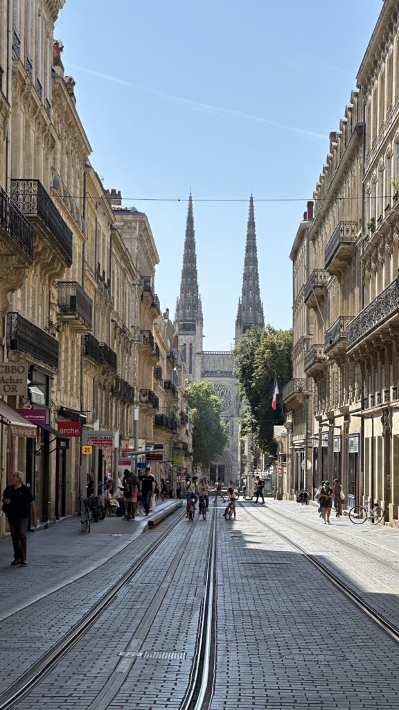 From there, we ventured into the heart of Bordeaux itself. Strolling through the elegant streets, we were struck by the distinctly British influence in the city’s architecture. Neoclassical buildings, with their symmetrical facades and intricate iron balconies, reminded us of Georgian-era designs found in cities like Bath and London. This would make more sense later, when we learned that Bordeaux was under British rule for over 300 years, during much of the historic city’s growth.