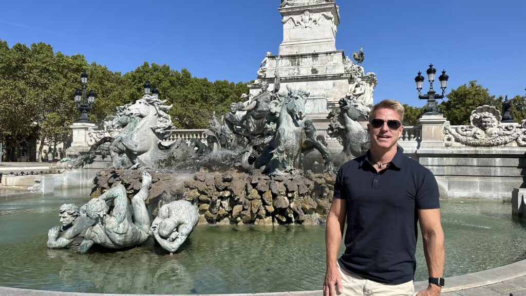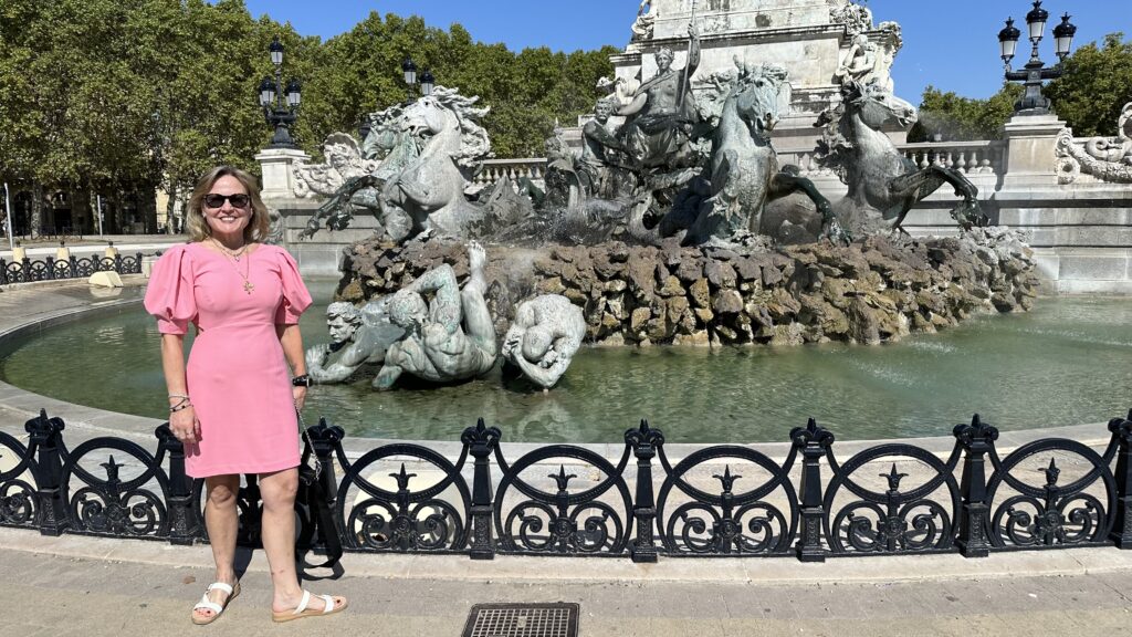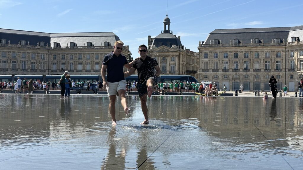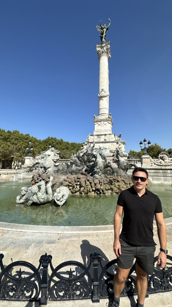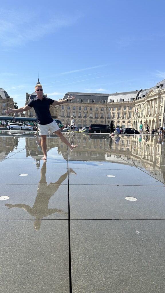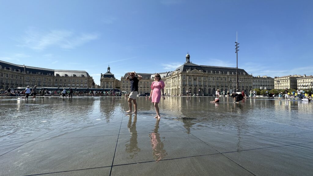 We then passed through the medieval Porte Cailhau, once the grand entrance to the city, and arrived at the Place de la Bourse. The square’s elegance and symmetrical architecture perfectly reflected Bordeaux’s 18th-century urban planning. Finally, we ended our tour at the Fontaine des Trois Grâces, where we couldn’t resist taking off our shoes and joining the many tourists playing in the shallow waters—a refreshing way to conclude a long walk through Bordeaux’s storied streets.