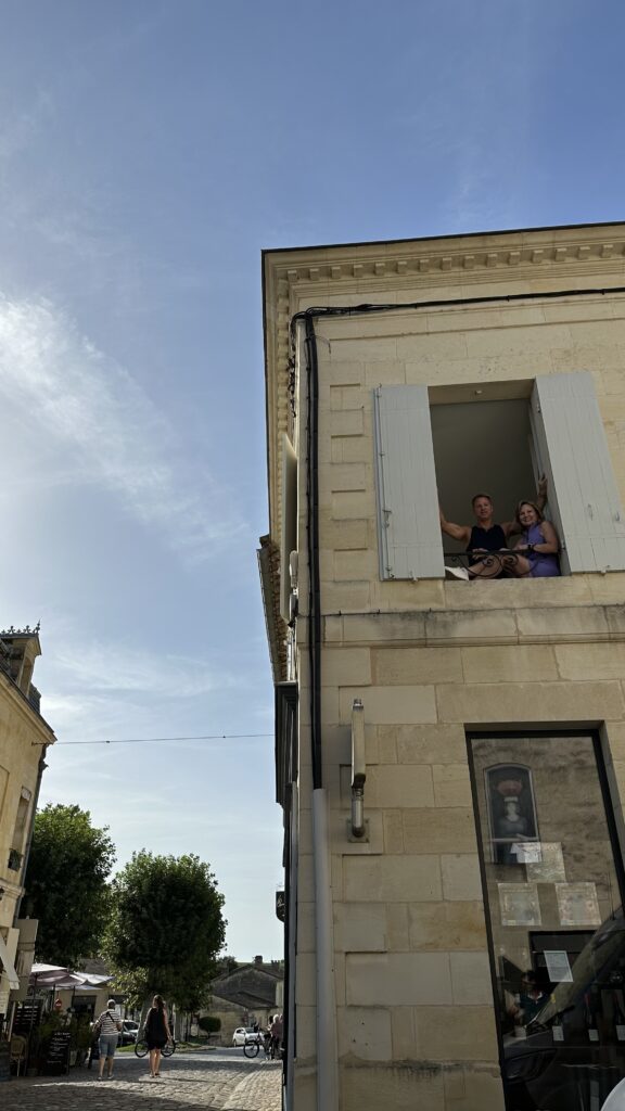 Our accommodation was a special one—we stayed in Saint-Émilion’s Mayor’s Mansion! Okay, it was an Airbnb that the mayor owned inside the walled city, but the look on people’s faces when we initially told them we were staying at the Mayor’s residence was priceless. From our luxurious accommodation, we set out on foot to explore the micro-village, population 2,000 residents. The medieval streets, winding cobblestone paths, and vine-covered stone houses paint a picturesque scene of old-world France.