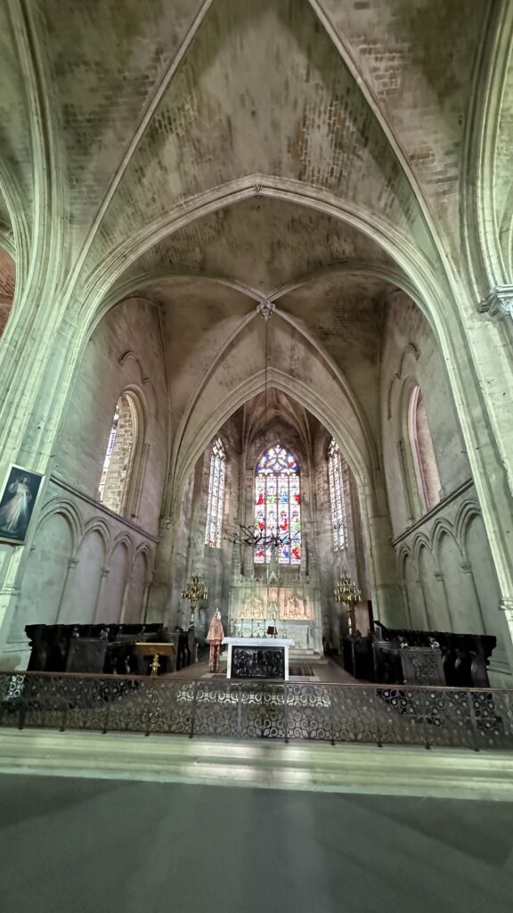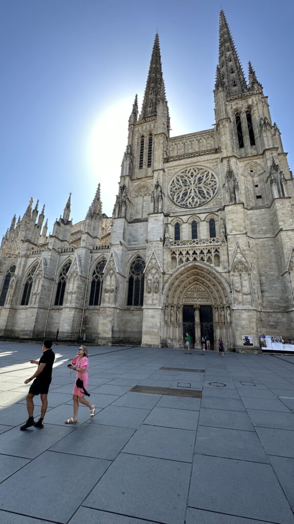 A walking tour through Bordeaux took us to some of its most iconic landmarks. We began at the Monument aux Girondins, a towering tribute to the Girondins, a political faction during the French Revolution. This impressive fountain and column ensemble is a reminder of Bordeaux’s historical significance and revolutionary past. Next, we visited the Église Notre-Dame de Bordeaux, a stunning 17th-century Baroque church known for its elaborate façade and dramatic interior, heavily inspired by Rome’s grand churches.