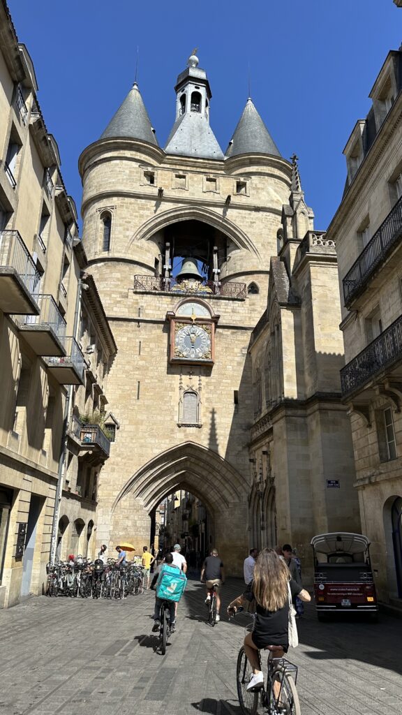 At 5 Place Jean Moulin, we learned about the site’s connection to the French Resistance during World War II. This location was a key meeting point for resistance fighters who coordinated covert operations against the Nazi occupation. The area is named after Jean Moulin, one of France’s most revered resistance leaders, who played a crucial role in unifying the resistance movements across the country. The bravery of those who gathered here remains an enduring symbol of Bordeaux’s resilience during the war. After this powerful history lesson, we marveled at the Big Bell of Bordeaux, a medieval gate and bell tower that once rang out warnings to the city’s inhabitants.
