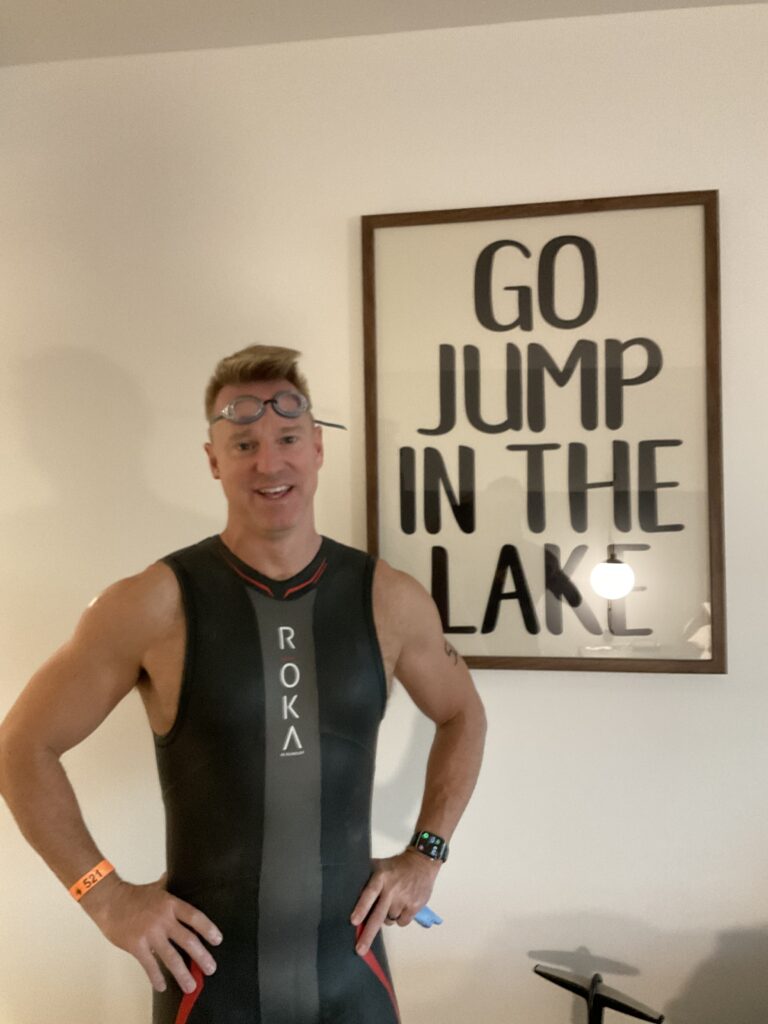 The plan worked perfectly. We entered the 65° water to start the race, which felt like the hotel’s jacuzzi compared to the air. The race itself went well too—I finished 7th, and Ramiro came in 14th overall in the swim. Nothing quite like cold water to kick your motivation into high gear!