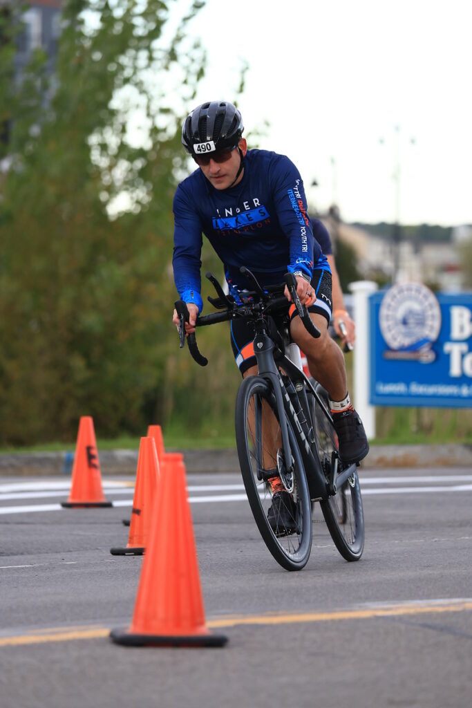 The winds were so strong that we could even see the impact on our split times during the run. It was a double-loop course—meaning Olympic distance competitors had to run it twice while the sprint athletes enjoyed complimentary local brews—straight into the wind for the first half of each loop. As for my run? Let’s just say my pace is legendarily slow. I’m pretty sure some of the spectators were walking faster than me.