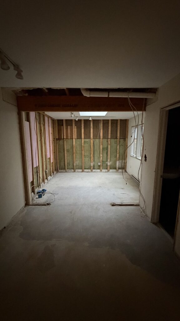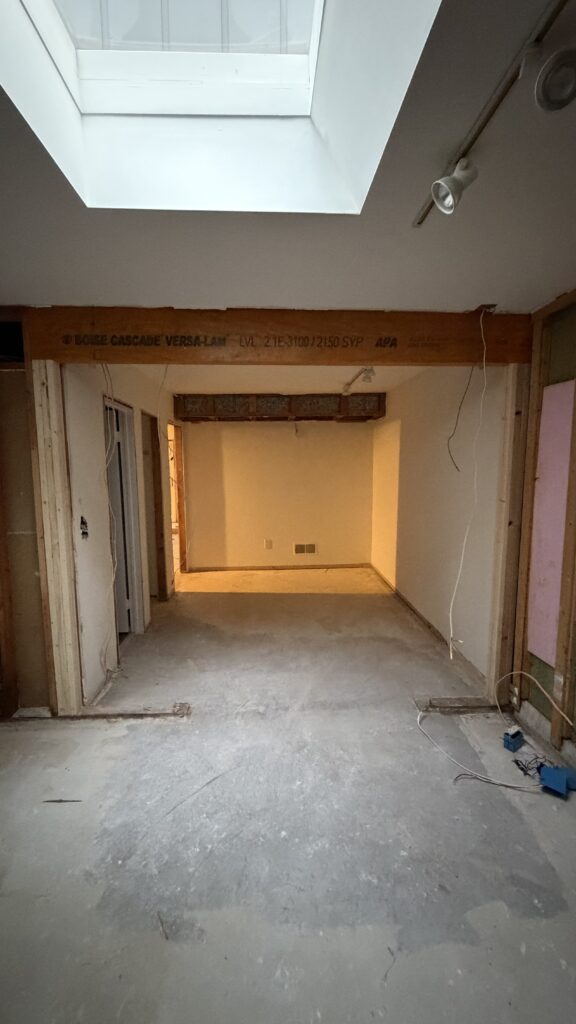 With the pony walls removed, the room stopped behaving like two adjacent spaces and started acting like one. Sightlines opened up, circulation improved, and what had once felt divided now feels deliberate. A unifying structural move that makes the space work for us now and into the future.