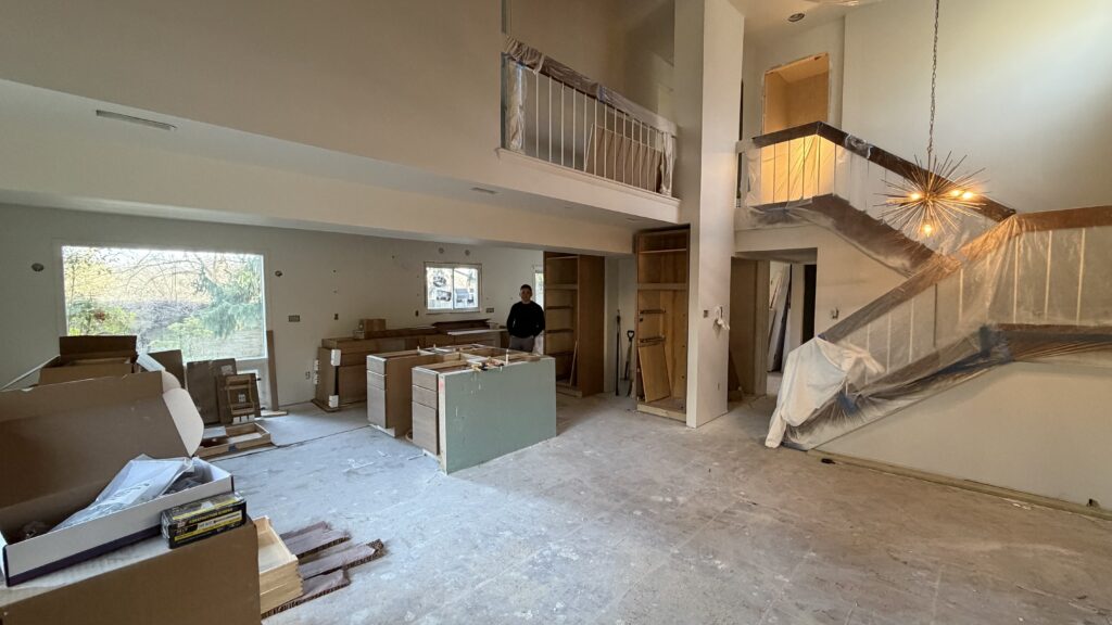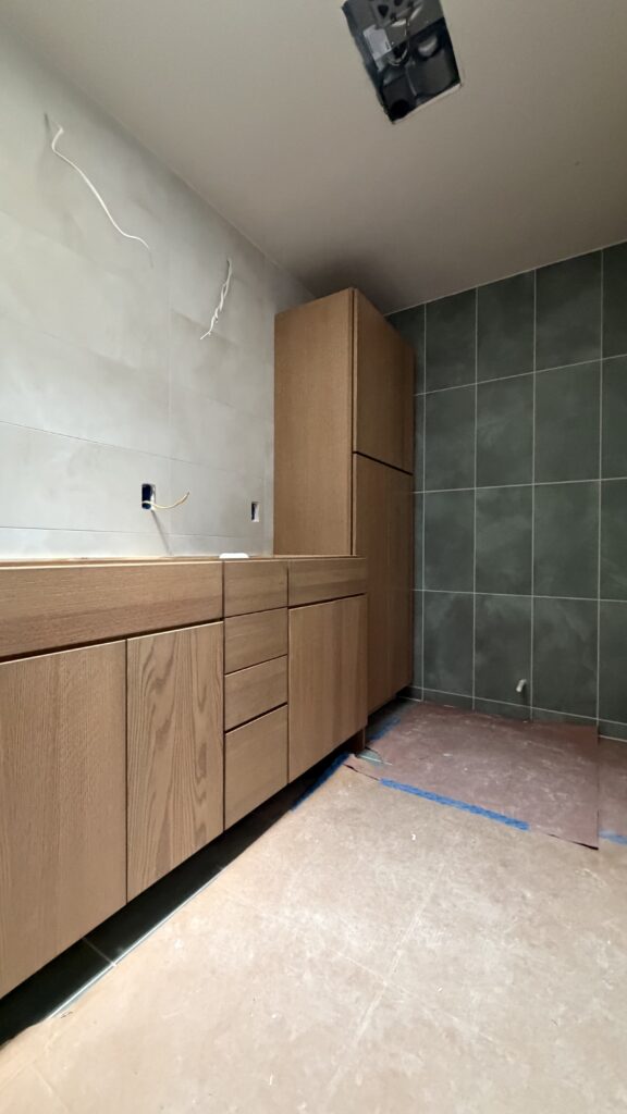 There’s still work to be done, of course. Countertops will land, fixtures will be installed, lighting will come to life, and the final details will begin transforming construction into comfort. But the heavy lifting is behind us now. Rooms are taking shape, materials are settling into place, and the vision first outlined back in Design With Intention is finally becoming visible. For the first time in months, it’s easy to walk through the house and imagine what everyday life here will actually feel like.